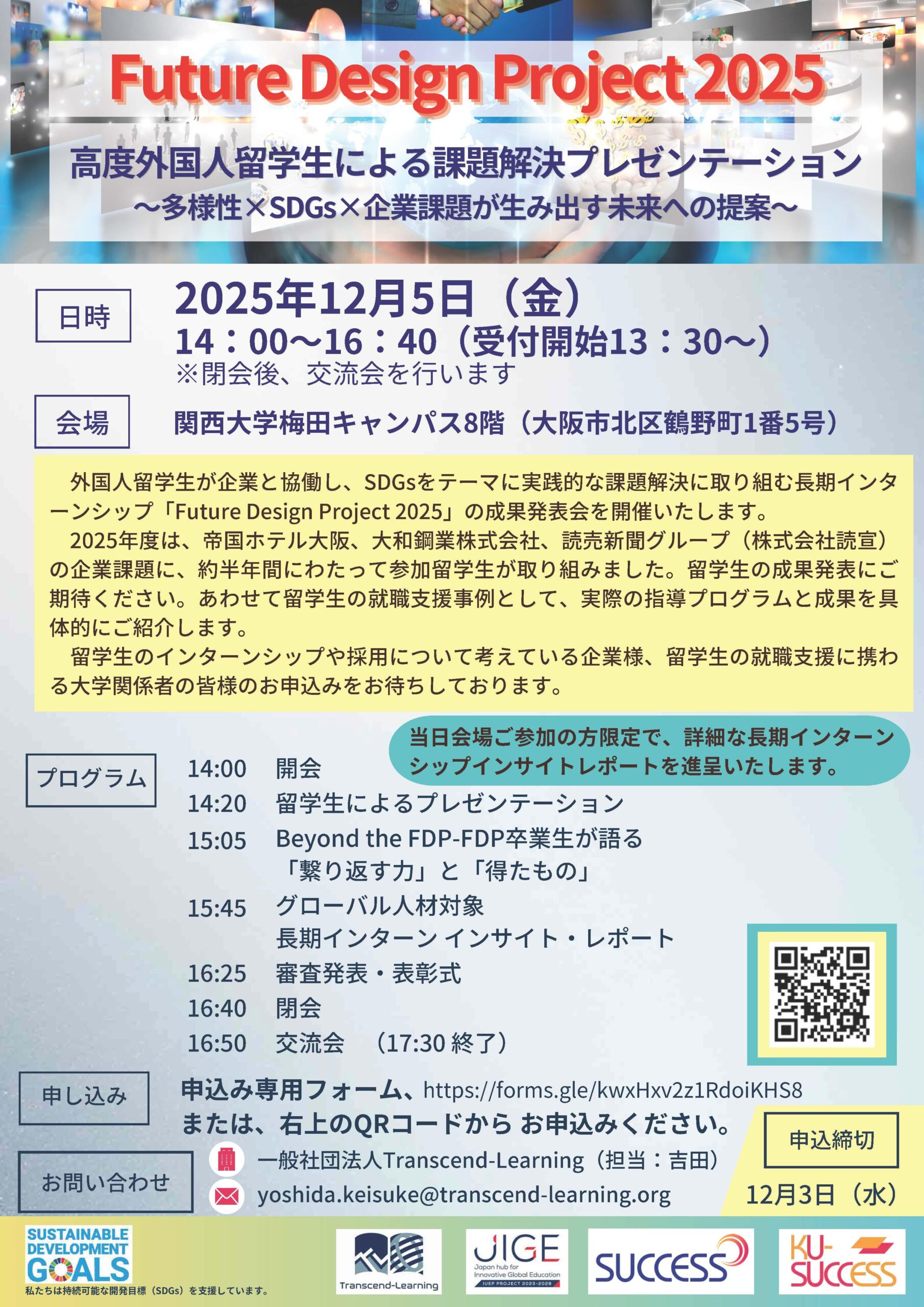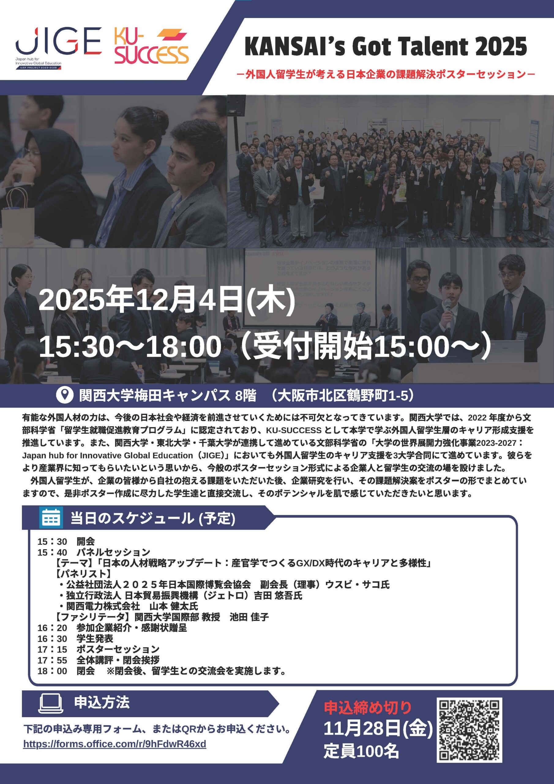 国際部では、外国人留学生が考える日本企業の課題解決ポスターセッション「KANSAI’s Got Talent 2025」 と SDGs課題解決型オリジナルインターンシップ「Future Design Project 2025」を開催いたします
